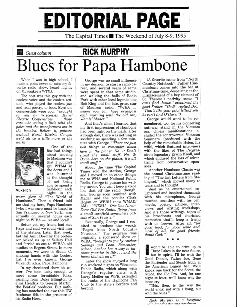 7-8-95: Blues for Papa Hambone – column by Rick Murphy October 30, 2025 Articles and Columns about George Vukelich (and Others) No Comments