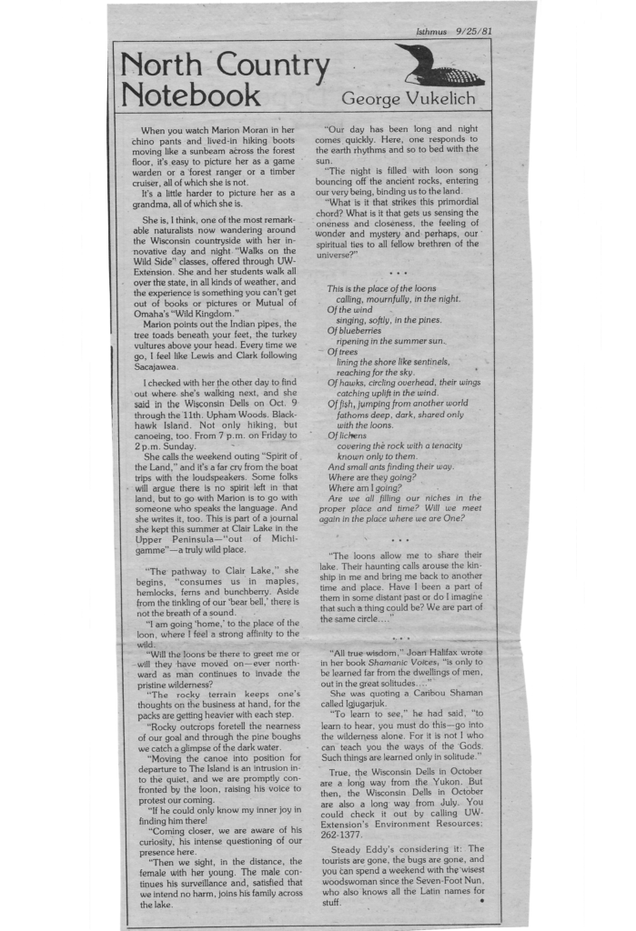 Isthmus 9-25-81: Marion Moran – Pathway to Clair Lake