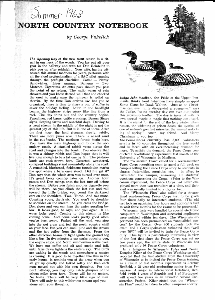 Wisconsin Tales and Trails Summer 1963: North Country Notebook October 30, 2025 Articles and Columns by George Vukelich No Comments